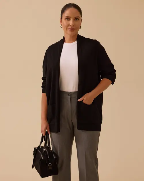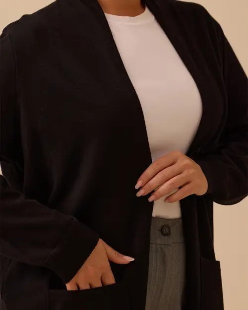 Büyük Beden Cepli Basic Triko Hırka, rahat kalıbı ve sade tasarımıyla günlük kullanıma uygun.