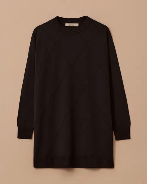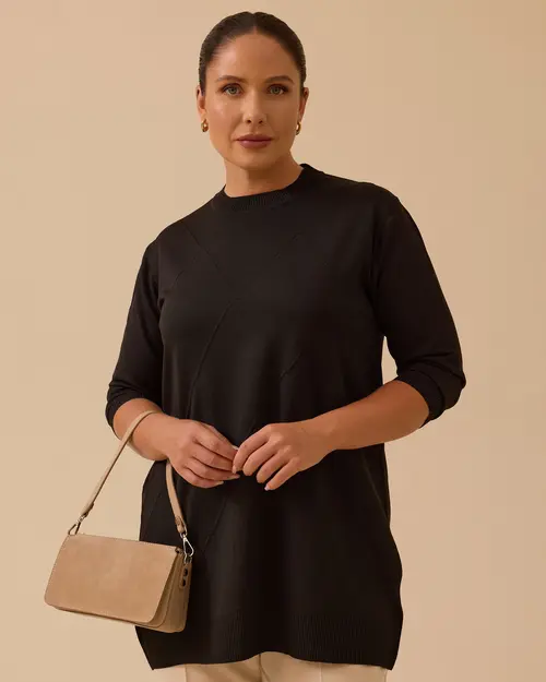Büyük Beden Desenli Basic Triko Tunik, rahat kalıbı ve modern desen tasarımıyla günlük şıklık ve konfor sunar.
