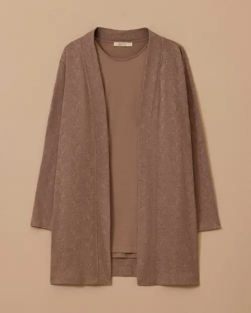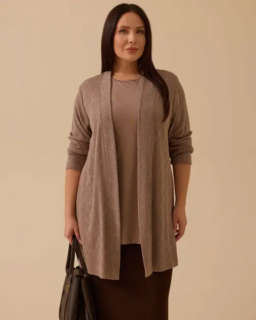 Büyük Beden Desenli İç Bluzlu Takım,iç bluz detayıyla şık ve kullanışlı bir kombin sağlar.