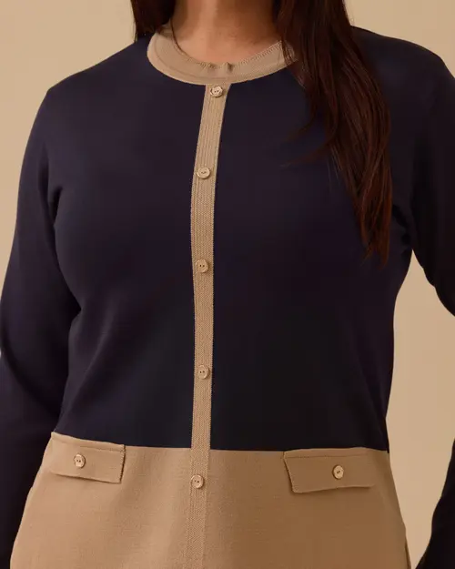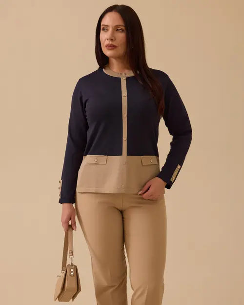 Büyük Beden Düğme Detaylı Triko Bluz, şık düğme tasarımı ve rahat kalıbıyla konforlu günlük kullanım sunar.