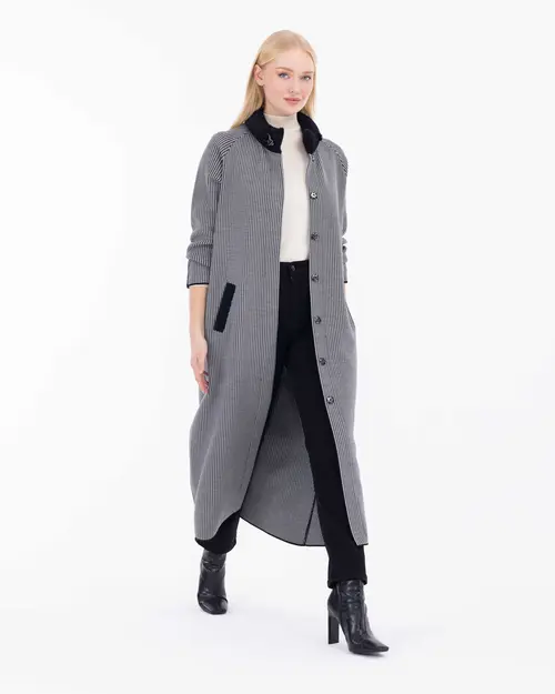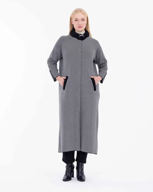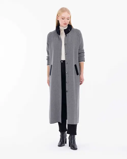 Zamansız desene sahip tasarımıyla göze çarpan triko hırkaya dik yakası eşlik ediyor. Hırkayı, casual ve şık kombinlerinizin bütünleyici parçası olarak kullanabilirsiniz.
