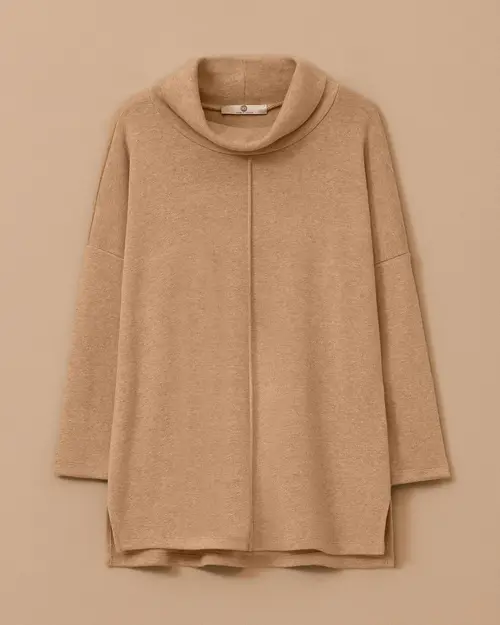 Balıkçı Yaka Ön Dikiş Detaylı Triko, modern tasarımı ve rahat kalıbıyla günlük stilinize şıklık katar.