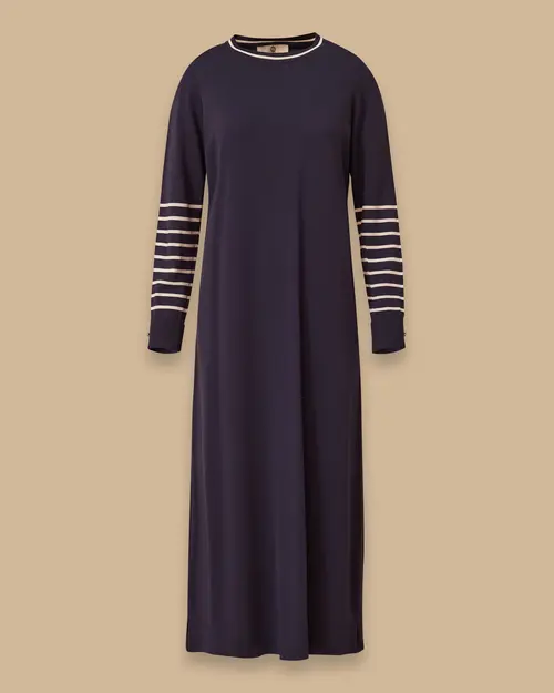 Çizgi Detaylı Tam Boy Triko Elbise