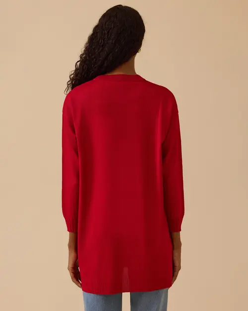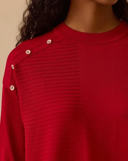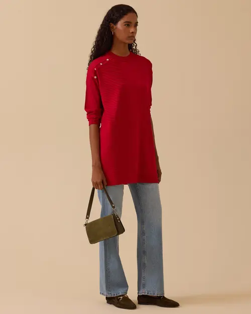 Düğme Detaylı Triko Tunik, modern dokusu ve omuz kısmındaki zarif düğme detayıyla günlük şıklık sunar.