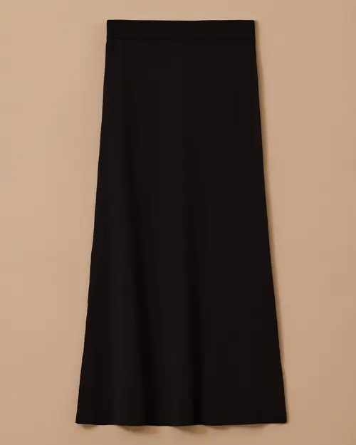 Düz Kesim Triko Etek, sade tasarımıyla konforlu ve zamansız kombinler oluşturur.