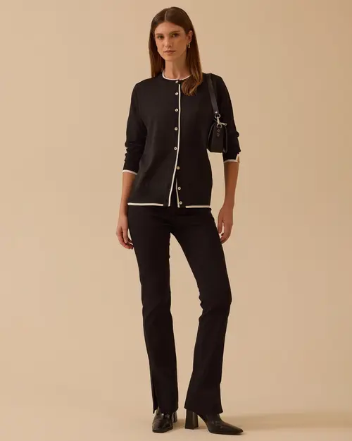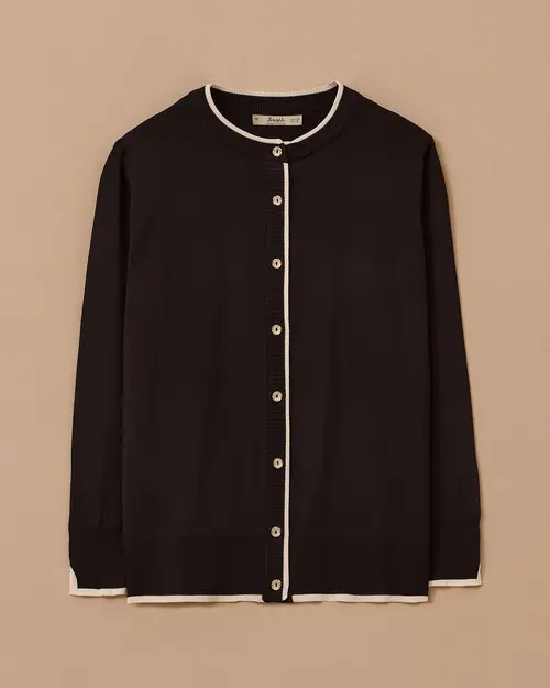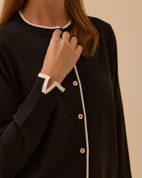 Biye Detaylı Düğmeli Triko Hırka, zarif tasarımı ve konforlu dokusuyla şıklığınızı tamamlar.