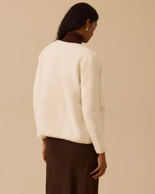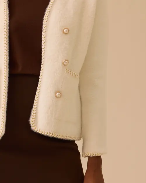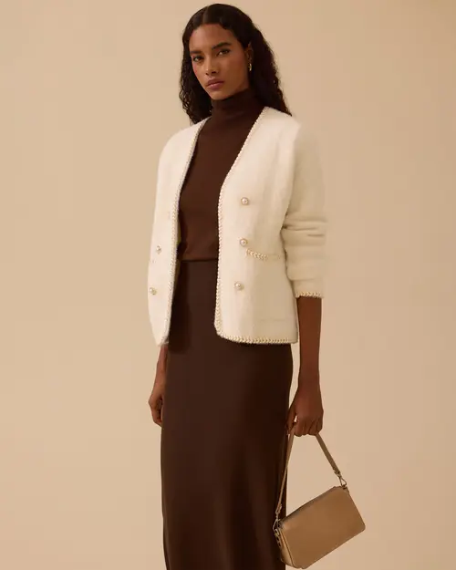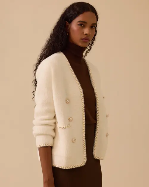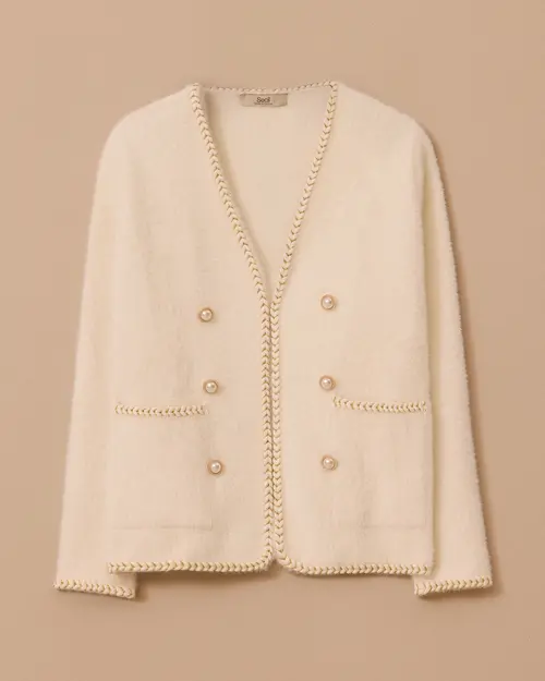 Düğme Detaylı Triko Hırka, düğme süslemeleri ve rahat kesimiyle günlük kullanıma uygun, şık ve kullanışlı bir modeldir.