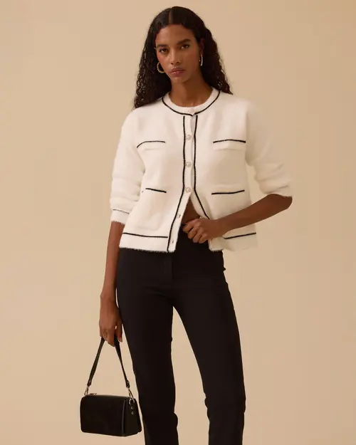 Düğmeli Biye Detaylı Triko Hırka, yumuşak dokusu ve rahat kalıbıyla günlük şıklığı kolayca yakalamanızı sağlar.