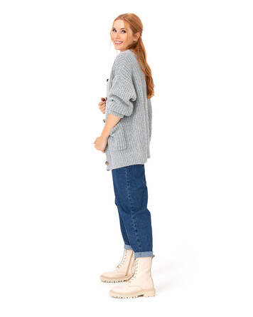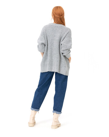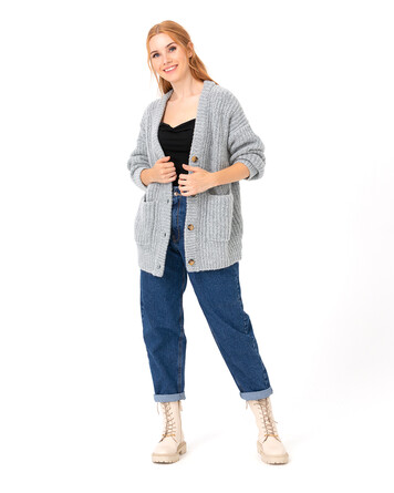 Rahat formu ile konfor sağlayan triko hırka, zamansız stillere alternatif sunuyor. Örgü görünümü ile şıklık kazanan trikoyu, yüksek bel denim pantolonlar ile kombinleyebilirsiniz.