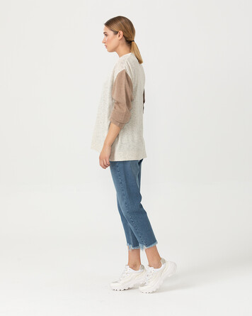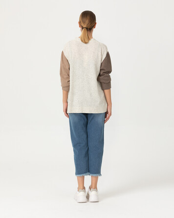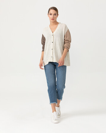 Renk geçişleri ile dikkat çeken hırka, geniş formu ile sezon trendlerini yansıtıyor. Hırkayı, serin yaz akşamlarında jean pantolonlar üzerine kombinleyebilirsiniz.