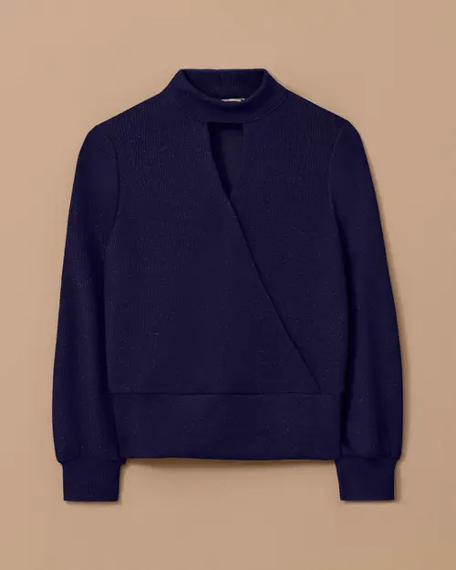 Pencere Detaylı Dik Yaka Triko Bluz, modern tasarımı ve şık görünümüyle hem ofis hem günlük stile uyum sağlar.
