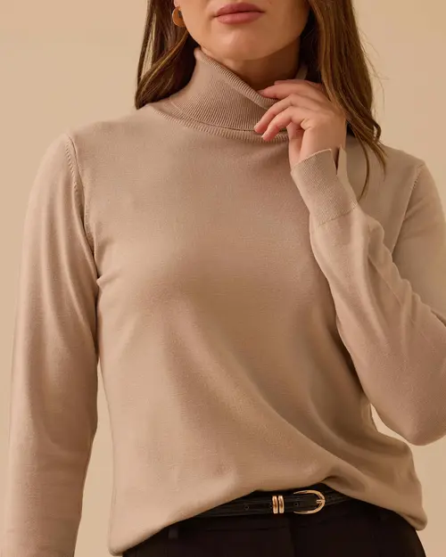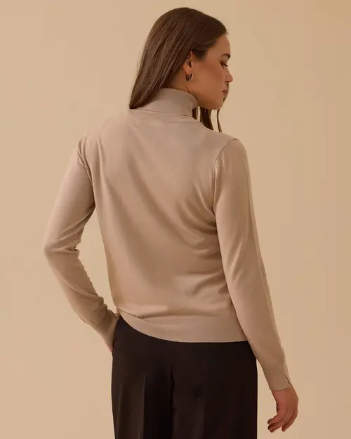 Tam Balıkçı Yaka Örme Triko Bluz, yumuşak dokusu ve sade şıklığıyla günlük kombinlere uyum sağlar.