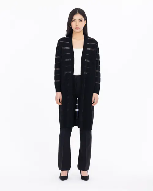 Transparan Detaylı Uzun Kollu Triko Hırka
