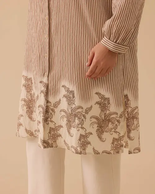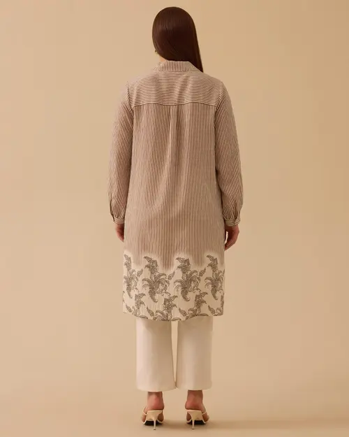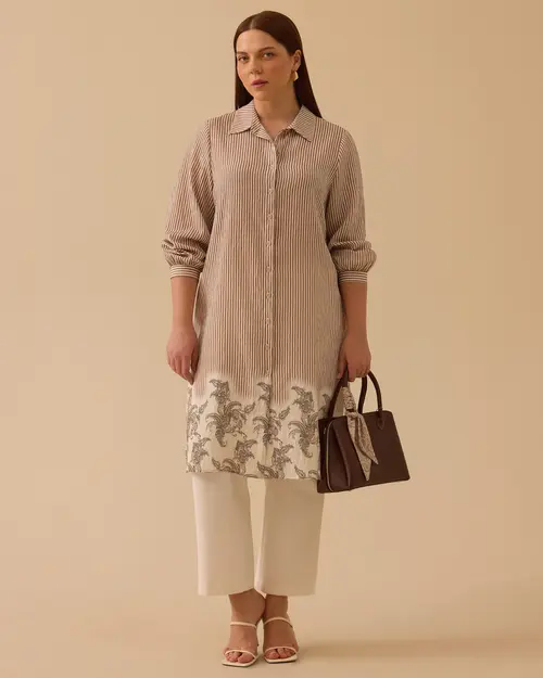 büyük beden etek ucu desenli çizgili tunik