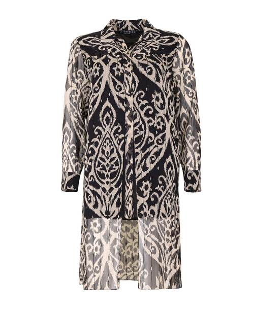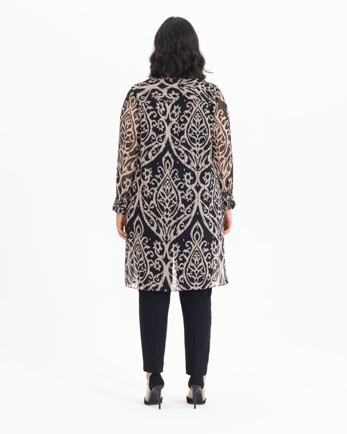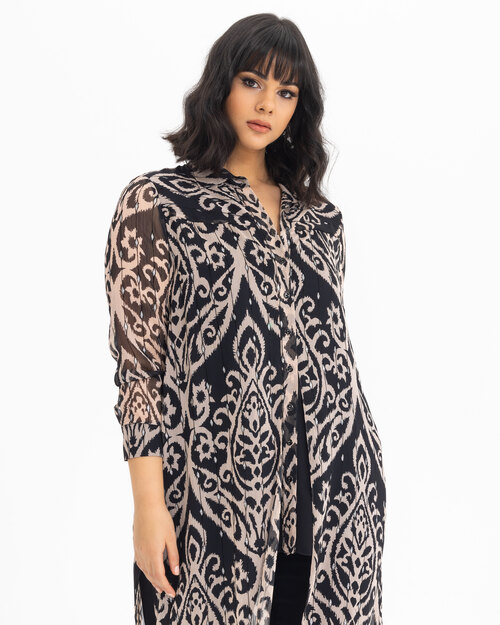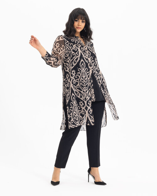 Etnik deseni ile dikkat çeken tunik, şifon dokusu ile sıcak günlerde de şıklığından ödün vermeyenlerin tercihi oluyor. Tuniği, relax fit pantolonlar ile tamamlayabilir, şık bir stil yansıtabilirsiniz.