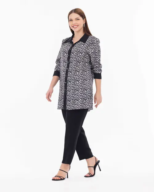 Büyük beden desenli gömlek yaka tunik, geniş bedenlere uygun, şık ve rahat bir parçadır. Gömlek yaka detayıyla trend bir görünüm sunan tunik, çeşitli desenlerle süslenmiş ve kombinlemesi kolay bir seçenektir.