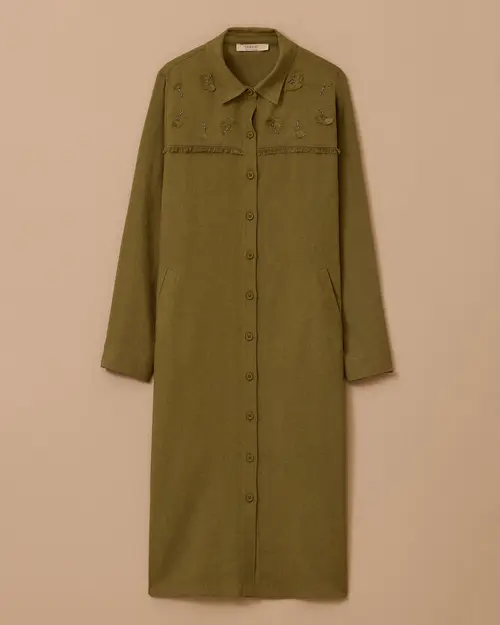 Nakış işlemeli, gömlek yaka keten tunik ile zarif stilinizi tamamlayın.