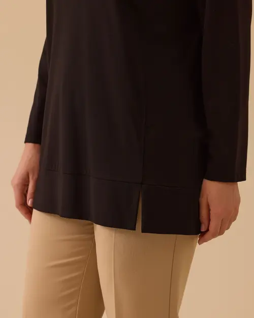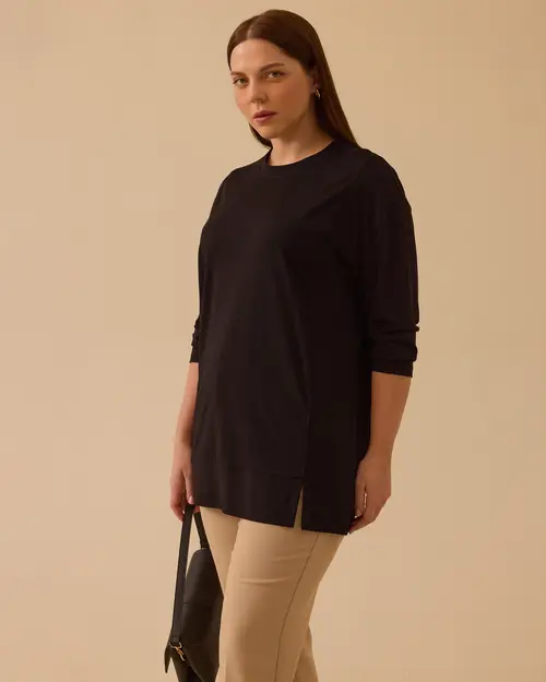 Büyük Beden Yırtmaç Detaylı Basic Tunik, modern kesimiyle rahat günlük kullanım sağlar.