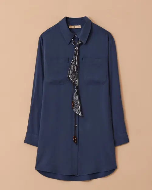 Aksesuar Detaylı Gömlek Yaka Tunik