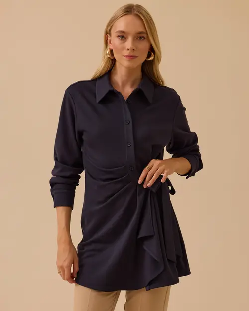 .Bağlama Detaylı Tunik, modern kesimi ve zarif detaylarıyla şık ve konforlu bir stil sunar.