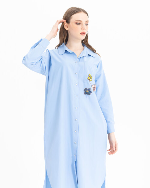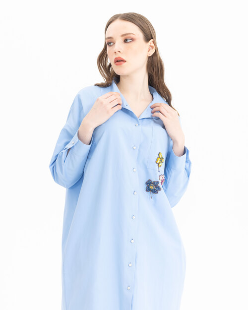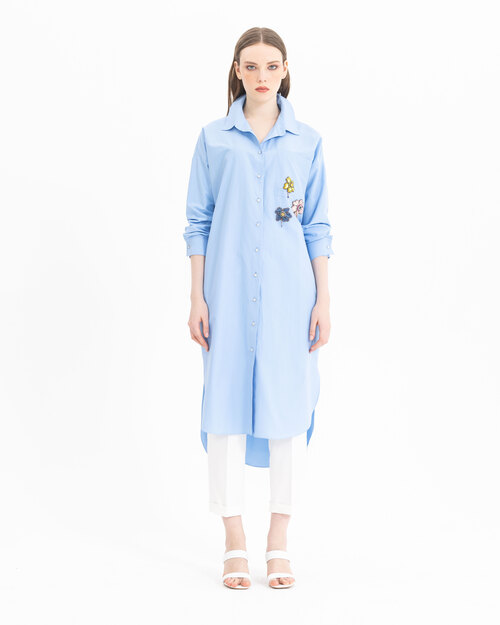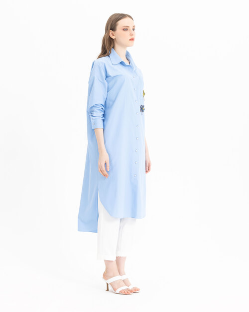 Boncuklu işlemeleri ile karakter kazanan tunik, koton dokusu ve midi boyu ile konfor alanını genişletiyor. Tuniği, beyaz pantolonlar ile tamamlamayı deneyebilir, öne çıkarabilirsiniz.