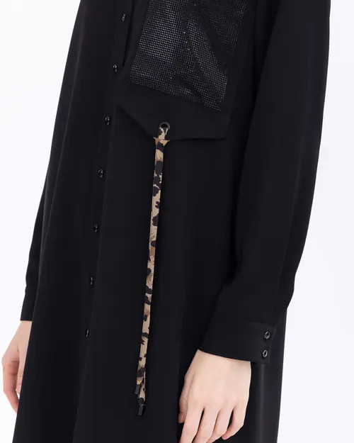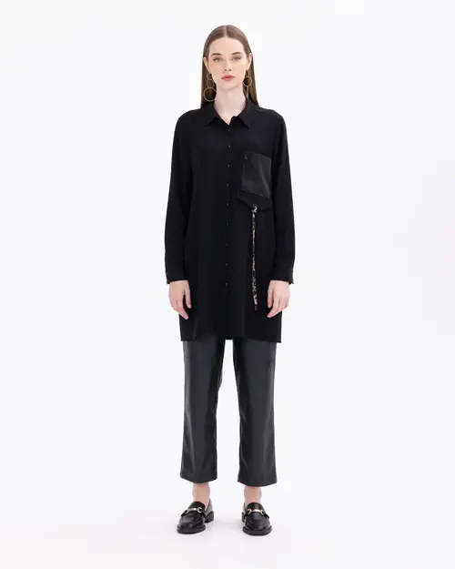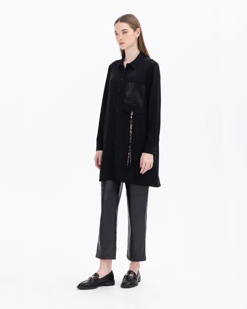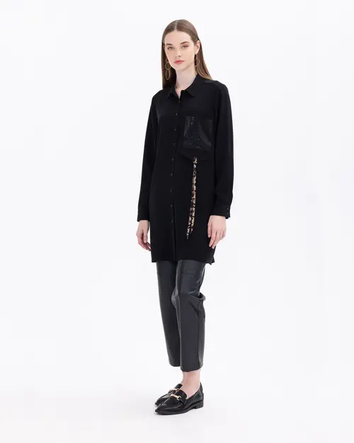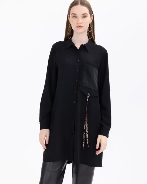 Leopar desen detaylı önden düğmeli tunik, şıklığı ve cesur bir stilin birleşimini sunar. Bu tunik, leopar deseniyle dikkat çekerken, önden düğmeli tasarımıyla kullanımı kolaydır. Uzunluğu sayesinde etek ya da pantolonla rahatça kombinlenebilir. Hem günlük hem de özel günler için mükemmel bir seçenektir ve stilinizi vurgulamak için ideal bir parçadır.