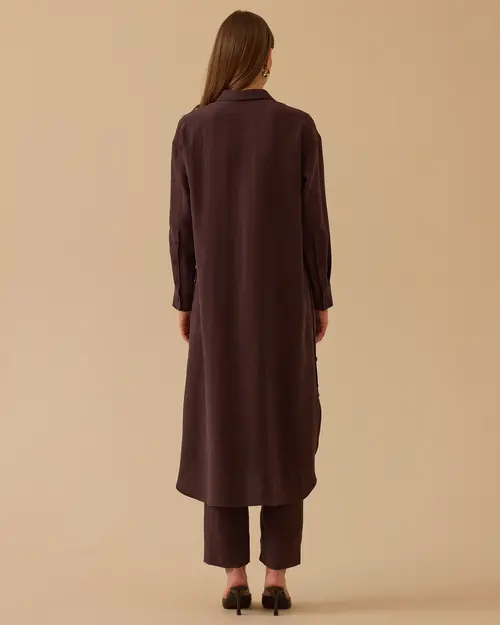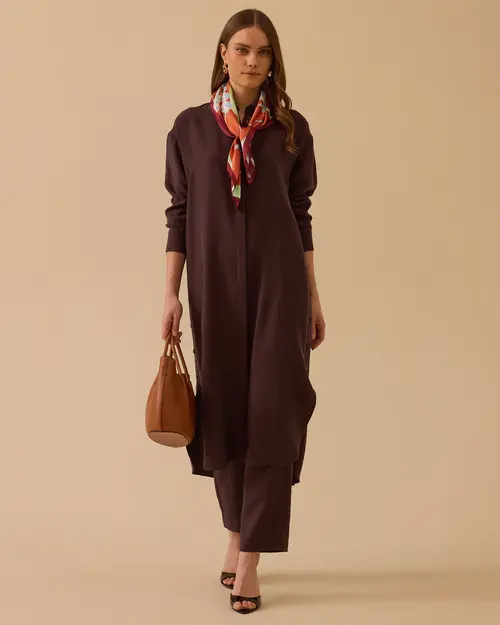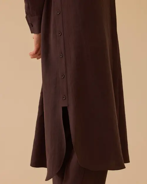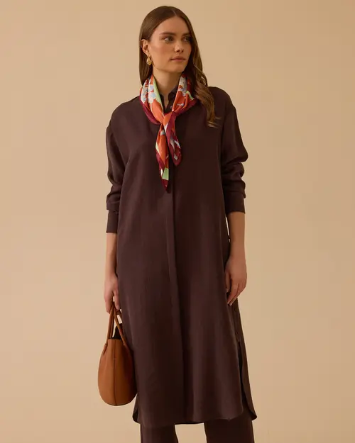 Midi boy gömlek yaka tunik, rahat kesimiyle konfor sunar, zamansız duruşuyla günlük kullanıma uyum sağlar
