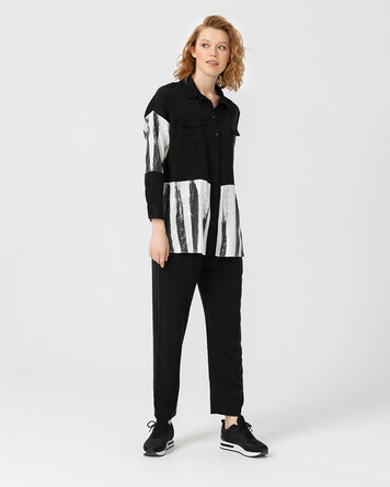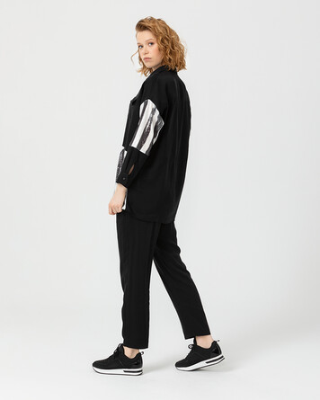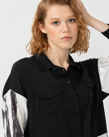 Hem şık hem spor olmak Scl’de mümkün. Pul payetli tuniğinizi rahat kesim pantolon ile kombinleyebilirsiniz.