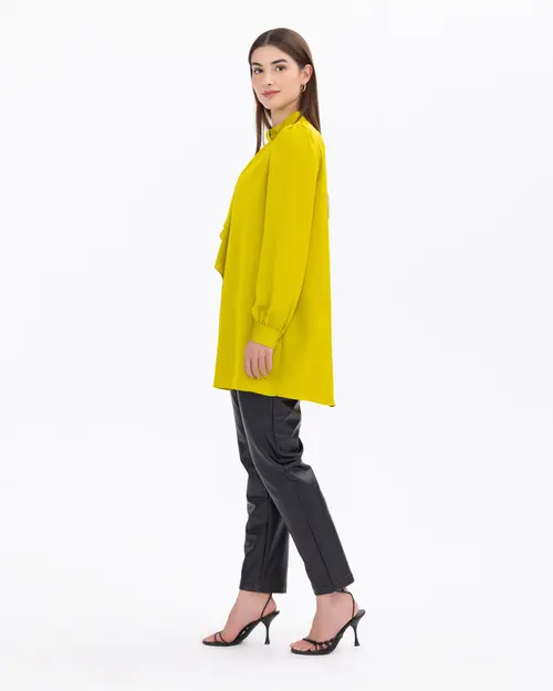 Saten Dokuma Hakim Yaka Tunik, şıklığı ve rahatlığı bir araya getiriyor. Saten dokusuyla öne çıkan tunik, modern kesimi ve zarif hakim yaka detayıyla da dikkat çekiyor. Hem özel davetlerde hem de günlük kombinlerde şık bir tercih olarak stilinizi yansıtmanızı sağlayan tuniği topuklu ayakkabılarınızla tamamlayabilirsiniz.