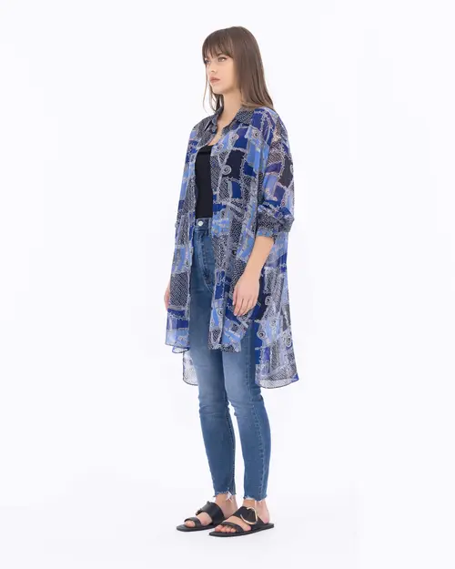 Deseni ile dikkat çeken tunik, şifon dokusu ile sezona adapte oluyor. Rahat kesimi ile konfor sunan tuniği, jean pantolonlarınız ile tamamlayabilirsiniz.