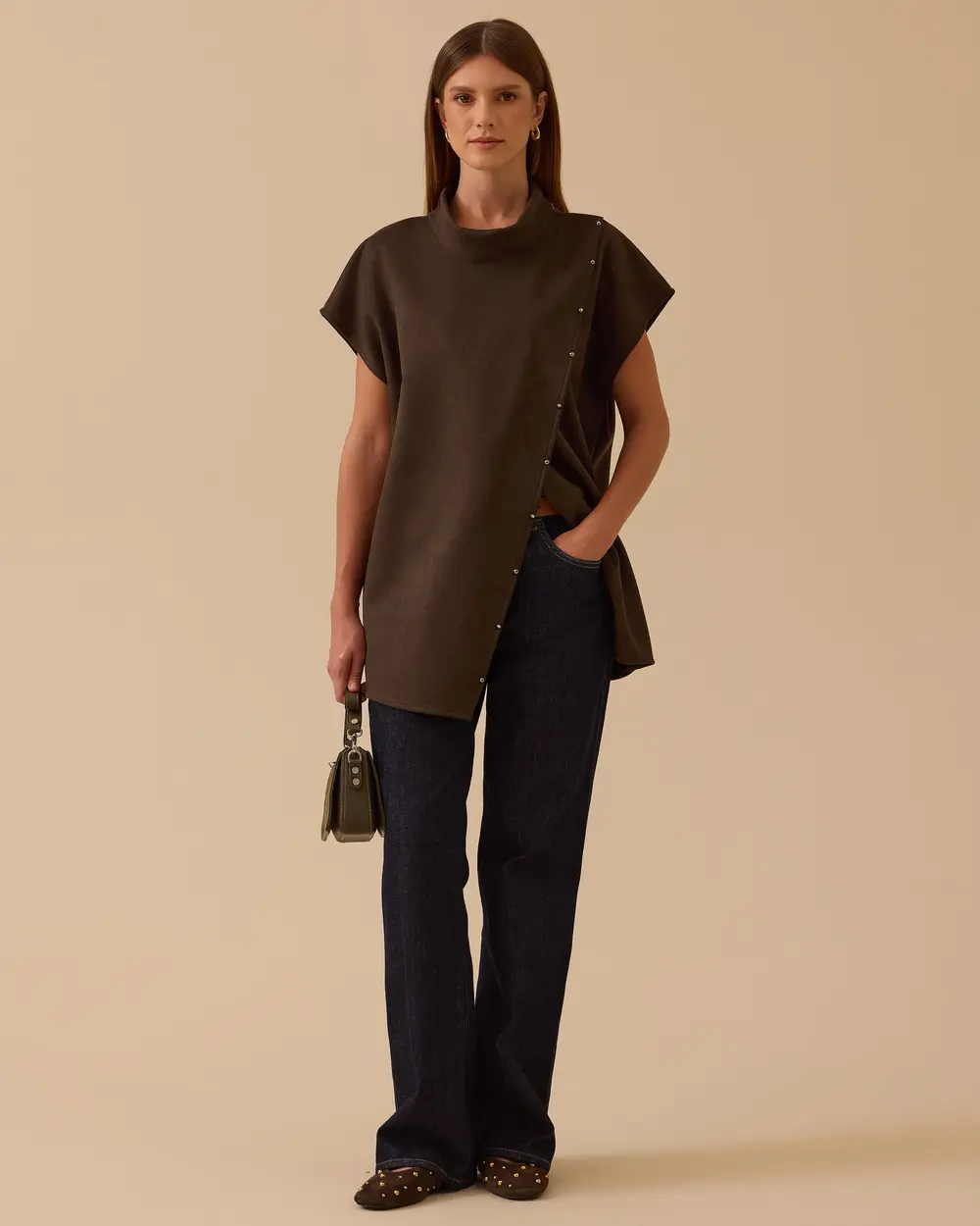 - asimetrik kesim düğme detaylı gömlek