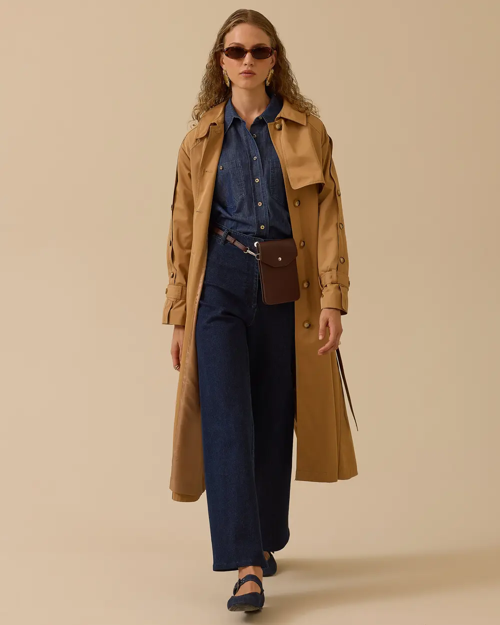 belden bağlamalı pul detaylı fermuarlı trençkot