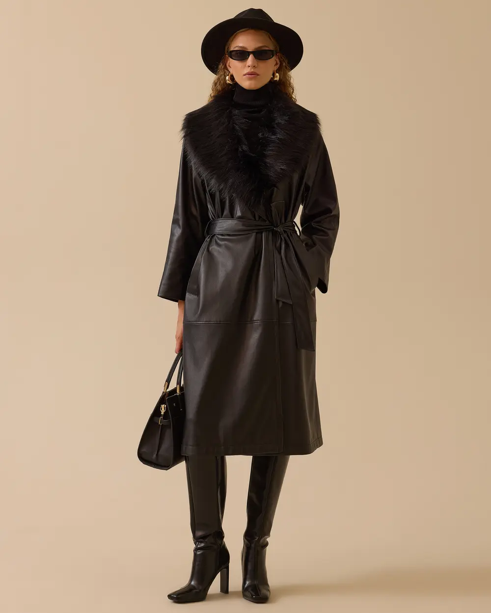 - çift kullanımlı leopar detaylı kemerli trençkot