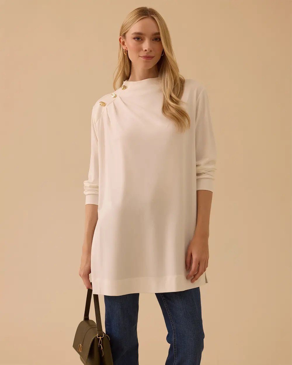 yan düğme detaylı uzun tunik